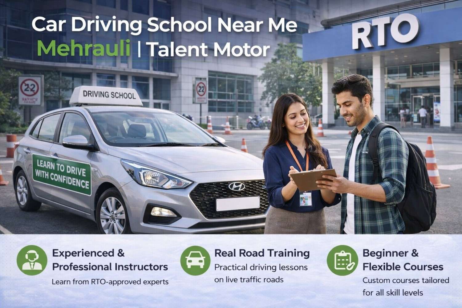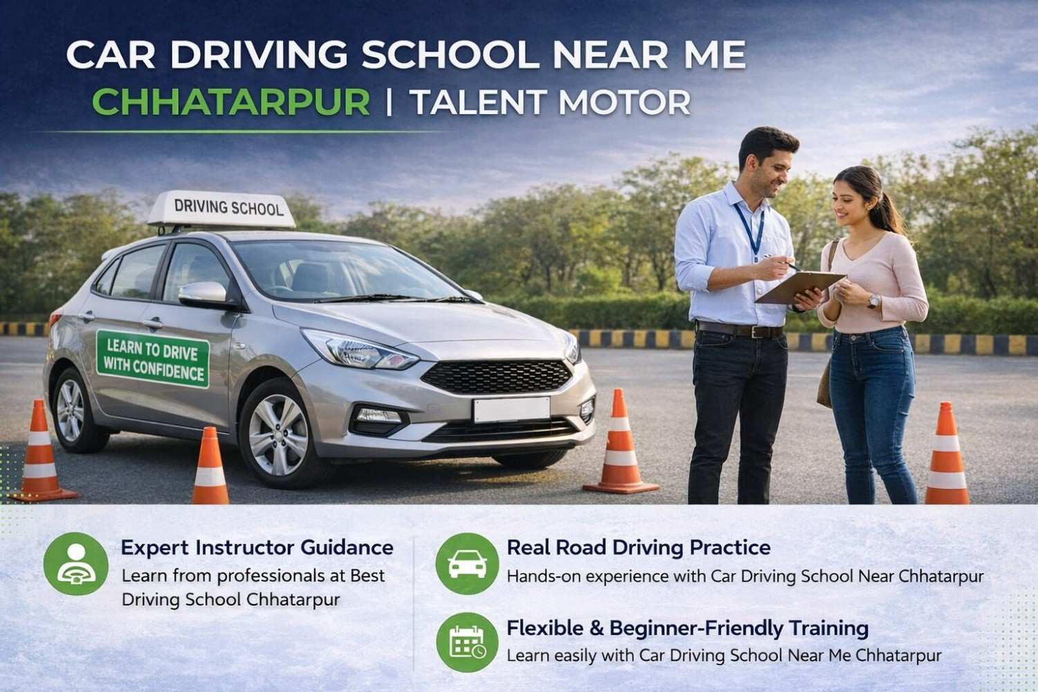 Step by step car driving lessons for beginners at Talent Motor Driving School β the best driving school in Chattarpur, South Delhi, Mehrauli & nearby areas. Learn safe driving today!